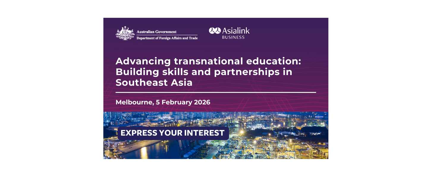 On behalf of the Department of Foreign Affairs and Trade, you are invited to express your interest in attending “Advancing transnational education: Building skills and partnerships in Southeast Asia”.